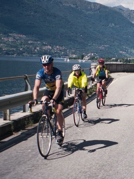 Riding south down the east shore of Lago di Como toward Varenna and our ferry ride back to Bellagio. Much of the lake shore riding around Lago di Como is on roads right next to the water, and even when the road curves up and inland, the lake is nearby, usually with great views!