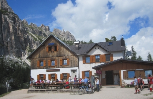 Rifugio Croda da Lago (2042m) is another wonderful lunch stop during a hike or mountain bike ride....And after lunch, it's downhill back to Cortina d'Ampezzo!