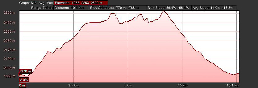 Averau to Croda Negra Hike Profile: 10.1 Km/6.2 miles with 779 meters/2562 feet of climbing.