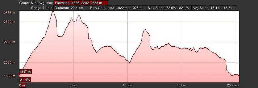 Averau–Nuvolau Hike Profile: 20.4 Km/12 miles with 1922 meters/6323 feet of climbing.