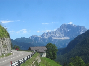 Descending rollers along the shoulder of Col di Lana—with excellent views of Monte Civetta—brings us to Andraz (1420m), where we'll head uphill on Passo Falzarego's (2105m) south side.
