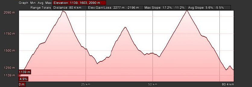 A short false flat brings us to Corvara (1555m) and the start of our short climb through alpine meadows to Passo Campolongo (1875m). And equally short, but no less fun descent, brings us to Arabba (1602m), where we rejoin the "Strada delle Dolomiti" (SS 48), as we turn east and start back toward Cortina.